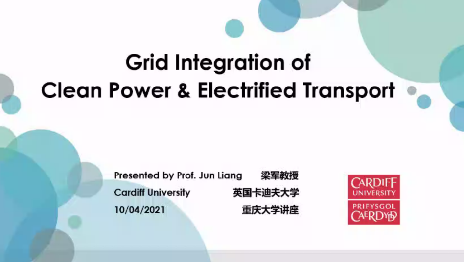 On the afternoon of April 10, 2021, Professor Jun Liang of Cardiff University was invited to deliver a speech at the “Online Lecture Hall”, titled Grid Integration of Clean Power & Electrified Transport. This series of online academic lectures were jointly organized by the School of Electrical Engineering of Chongqing University, the State Key Laboratory of Power Transmission Equipment and Sy...