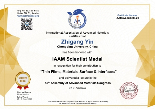 Recently, the 55th International Assembly of Advanced Materials Congress, hosted by the International Association of Advanced Materials (IAAM), was held in Stockholm, the capital of Sweden, in a combined offline and online format. Professor Yin Zhigang from our School was honored with the 2023 IAAM Scientist Medal by the association, recognizing his outstanding contributions to the fields of th...