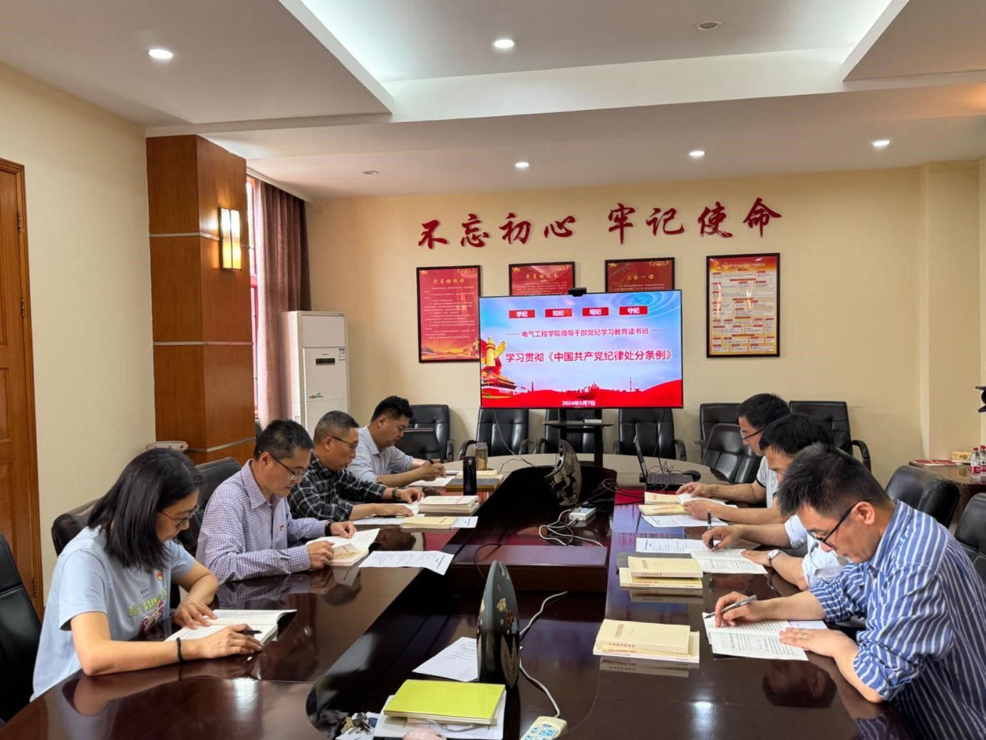 2024年5月7日,蜜桃直播 党委举行党纪学习教育读书班暨党委理论学习中心组专题学习会,深入学习贯彻《中国共产党纪律处分条例》,先学一步、学深一层,带动全院党纪学习教育走深走心走实。读书班由蜜桃直播 党委书记胡建林主持,党委理论学习中心组成员参会。在参加了学校党纪学习教育读书班开班式后,读书班成员回到蜜桃直播 开展为期一天的集中学习、集中研讨。大家原原本本研读《中国共产党纪律处分条例》《习近平论党的自我革命》...