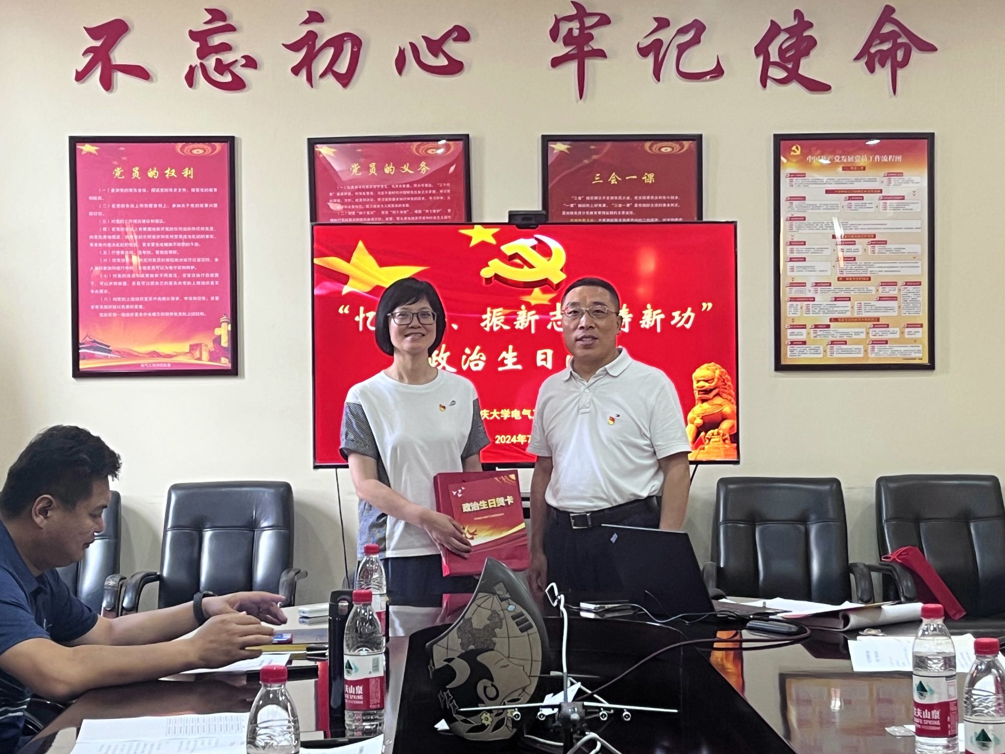 为进一步强化党员身份意识、责任意识和担当意识,扎实推进党员教育。2024年7月2日下午,蜜桃直播 党委在6300会议室开展“忆初心 振新志 铸新功”党员政治生日活动,通过“五个一”,教师党员们共同度过一个庄严而又温馨的政治生日。会议由蜜桃直播 党委书记胡建林主持,党委副书记王晓静、吴嘉及颜伟等7位党员教师参加。活动在庄严的国歌声中拉开序幕。随后,胡建林宣读政治生日名单,并向每位党员送上“生日贺卡”、《党章》、《...