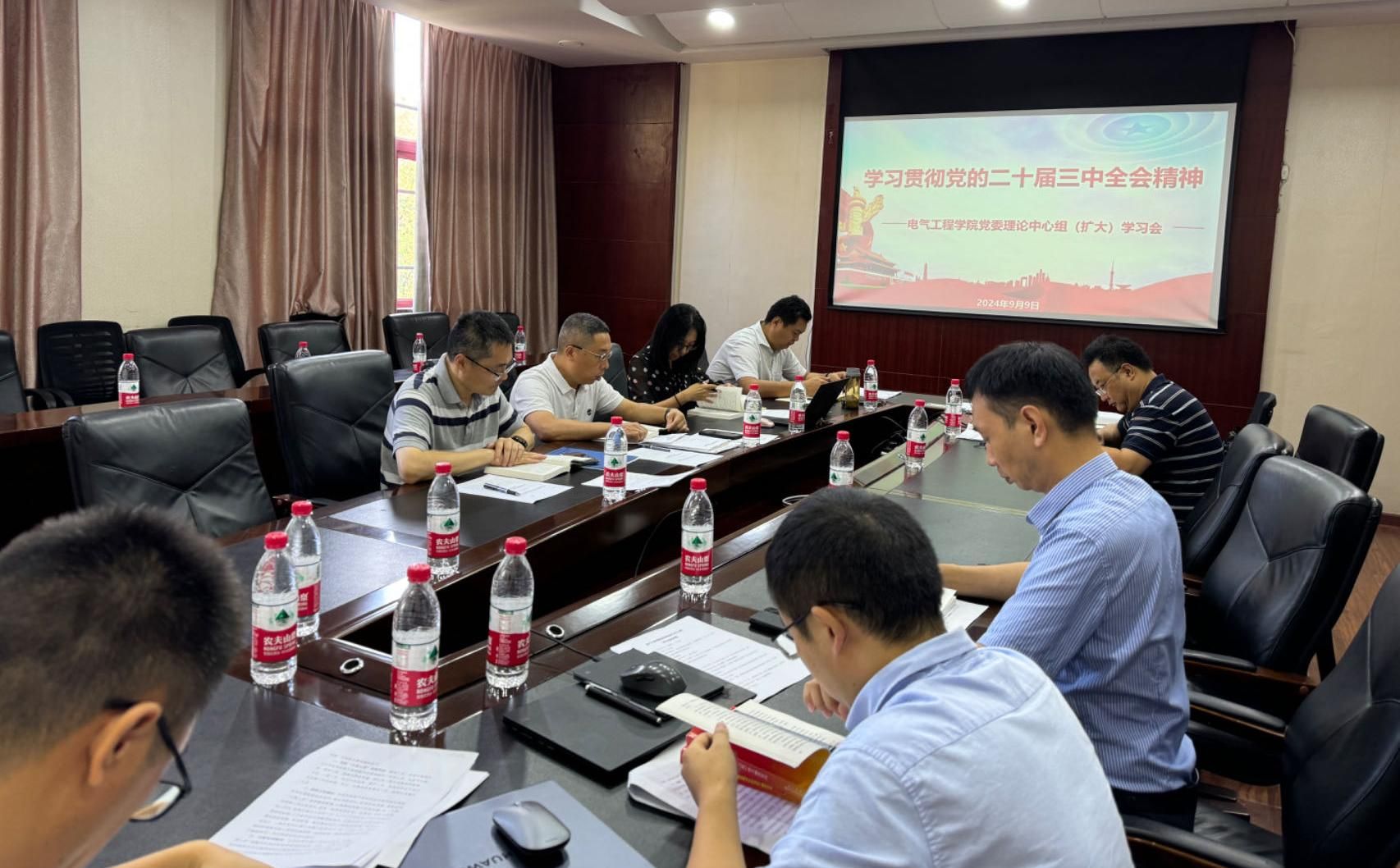 2024年10月10日上午,蜜桃直播 党委理论学习中心组召开学习会,学习习近平同志《论教育》。蜜桃直播 党委委员、党政班子成员参加。会议由党委书记胡建林主持。