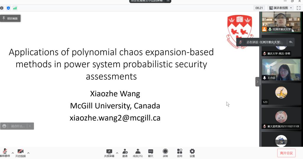 2021年12月11日上午,加拿大麦吉尔大学电子与计算机工程系助理教授王小喆受邀做客“成渝地区双城经济圈智慧能源大讲坛”,担任讲坛第六期的主讲嘉宾,以“Applications of Polynomial Chaos Expansion-based Methods in Power System Probabilistic Security Assessments”为主题开讲。本期讲坛由蜜桃直播 、输配电装备及系统安全与新技术蜜桃直播-探花直播-色播重点实验室和蜜桃直播 溧阳智慧城市研究院主办,由成都地区的四川大学、电子科技大学...