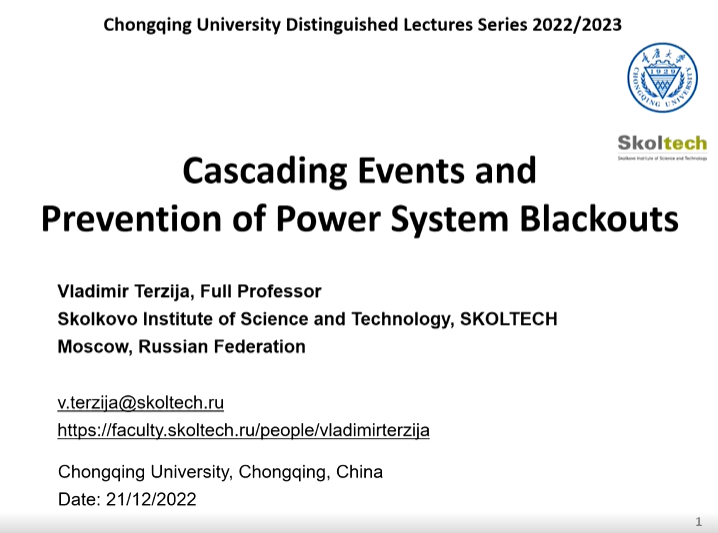 2022年12月21日下午,IEEE Fellow、俄罗斯斯科尔科沃科学技术研究院Vladimir Terzija教授做客成渝地区双城经济圈智慧能源大讲坛第十九期暨智慧能源云讲堂第三十五期,以“Cascading Events and Prevention of Power System Blackouts”为主题开讲。本期讲坛由蜜桃直播 、输配电装备及系统安全与新技术蜜桃直播-探花直播-色播重点实验室和蜜桃直播 溧阳智慧城市研究院主办,由成都地区的四川大学、电子科技大学、西南交通大学、成都理工大学、成都中...