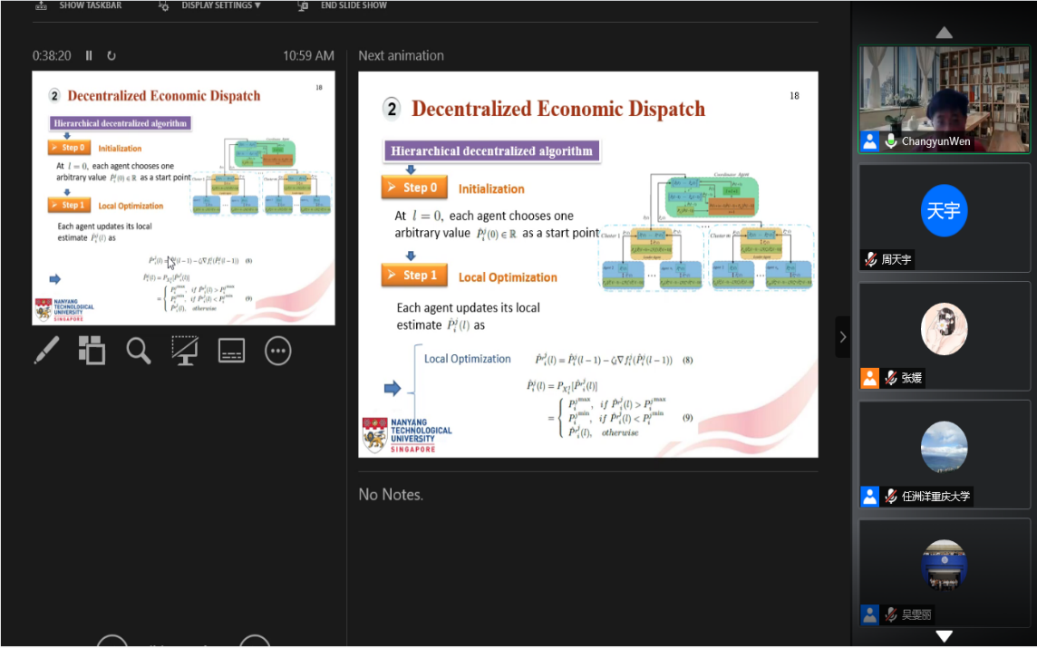 On the morning of March 20, 2021, Professor Changyun Wen of Nanyang Technological University was invited to deliver a speech, with the title Hierarchical Decentralized Optimization Architecture for Economic Dispatch: A New Approach for Large-Scale Power System. This academic lecture was jointly organized by the School of Electrical Engineering of Chongqing University, the State Key Laboratory of Power Transmission Equipment and and System Security, and the Chongqing Electrical Engineering Society, and was hosted by Ren Zhouyang, Dean Assistant of the School.