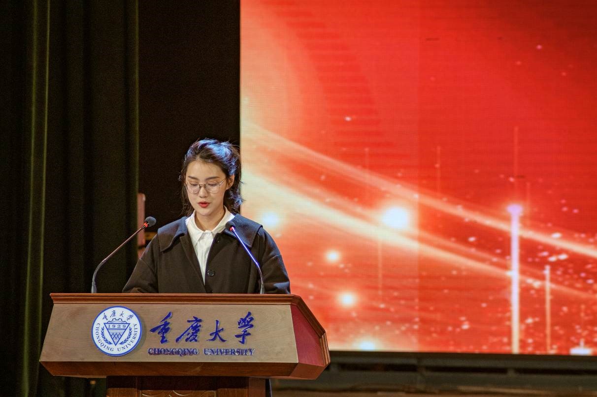 Zhong Wenxin, an undergraduate student, gave a speech, telling her journey of becoming an excellent student representative.