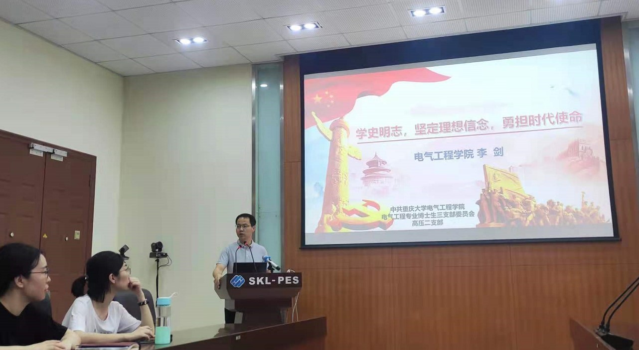 On June 17th, 2021, all party members of the second branch of the high voltage and insulation technology master students and the third branch of all doctoral students held an educational meeting with learning Party knowledge as the main theme. This meeting invited Professor Li Jian, Dean of the School of Electrical Engineering to give constructive instructions to the students. Teachers of the school also actively participated.