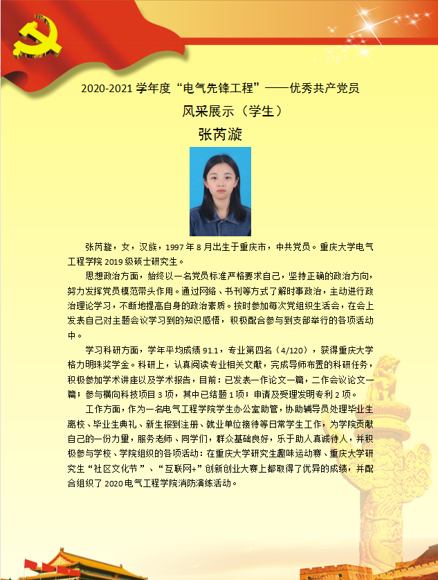 【党员风采】电力系统及其自动化硕士生三支部张芮漩