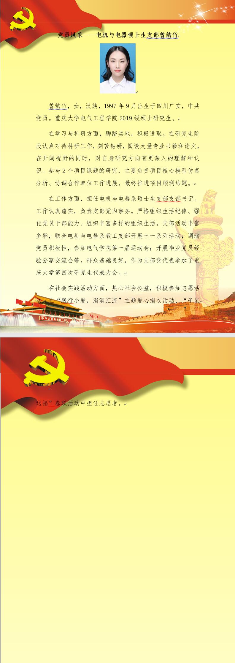 【党员风采】电机与电器硕士生支部曾韵竹