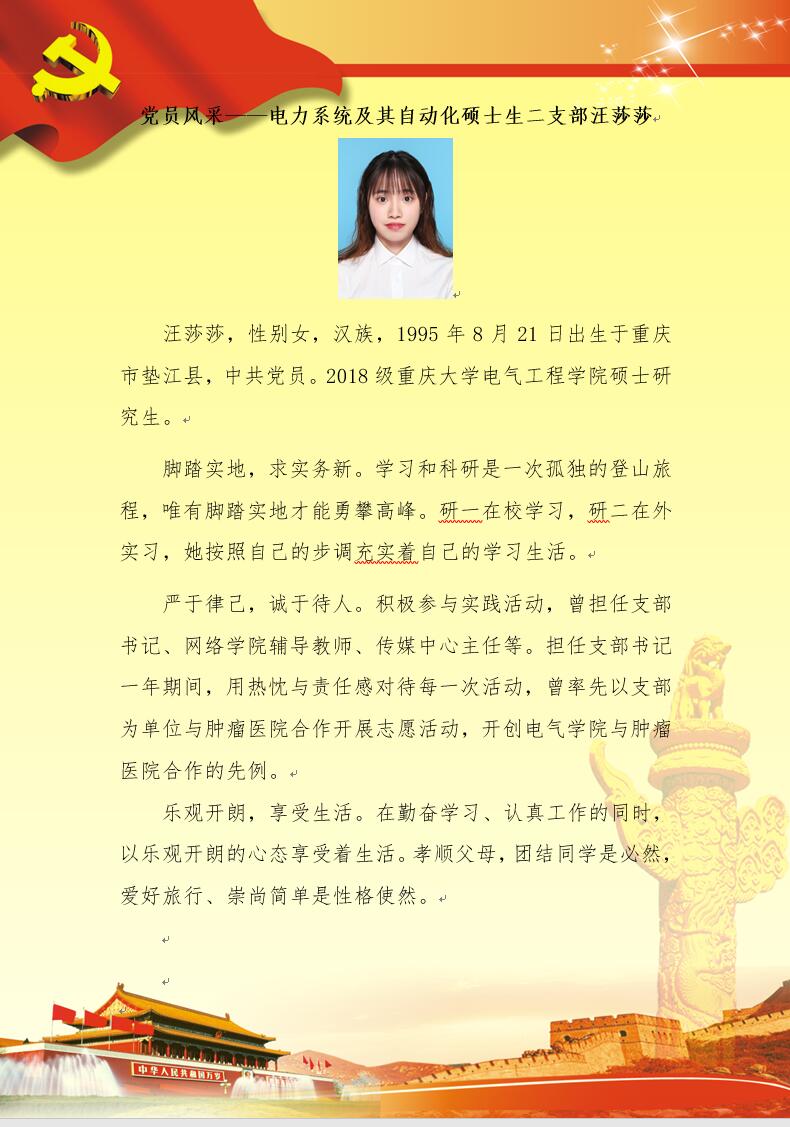 【党员风采】电力系统及其自动化硕士生二支部汪莎莎