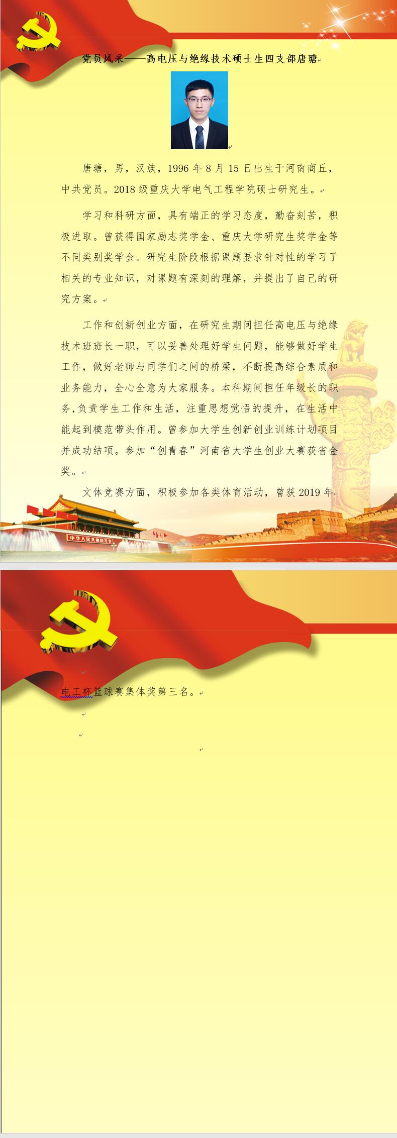 【党员风采】高电压与绝缘技术硕士生四支部唐瑭