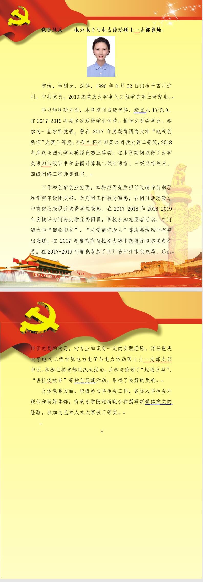 【党员风采】电力电子与电力传动硕士一支部曾烛