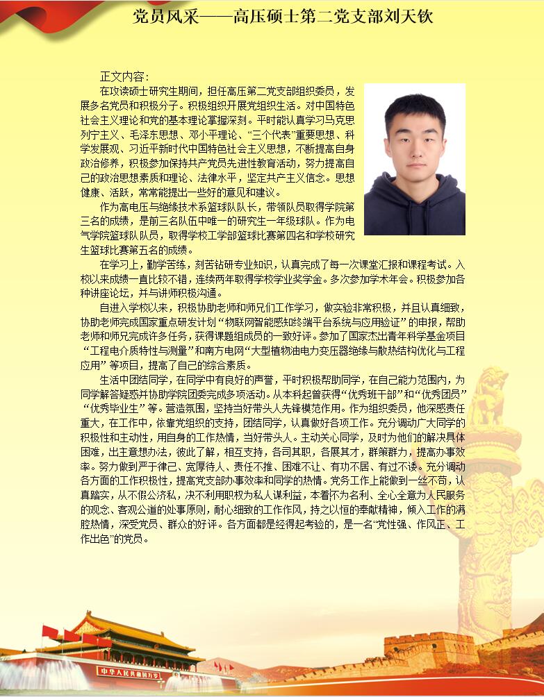 【党员风采】高电压及其绝缘技术第二党支部刘天钦