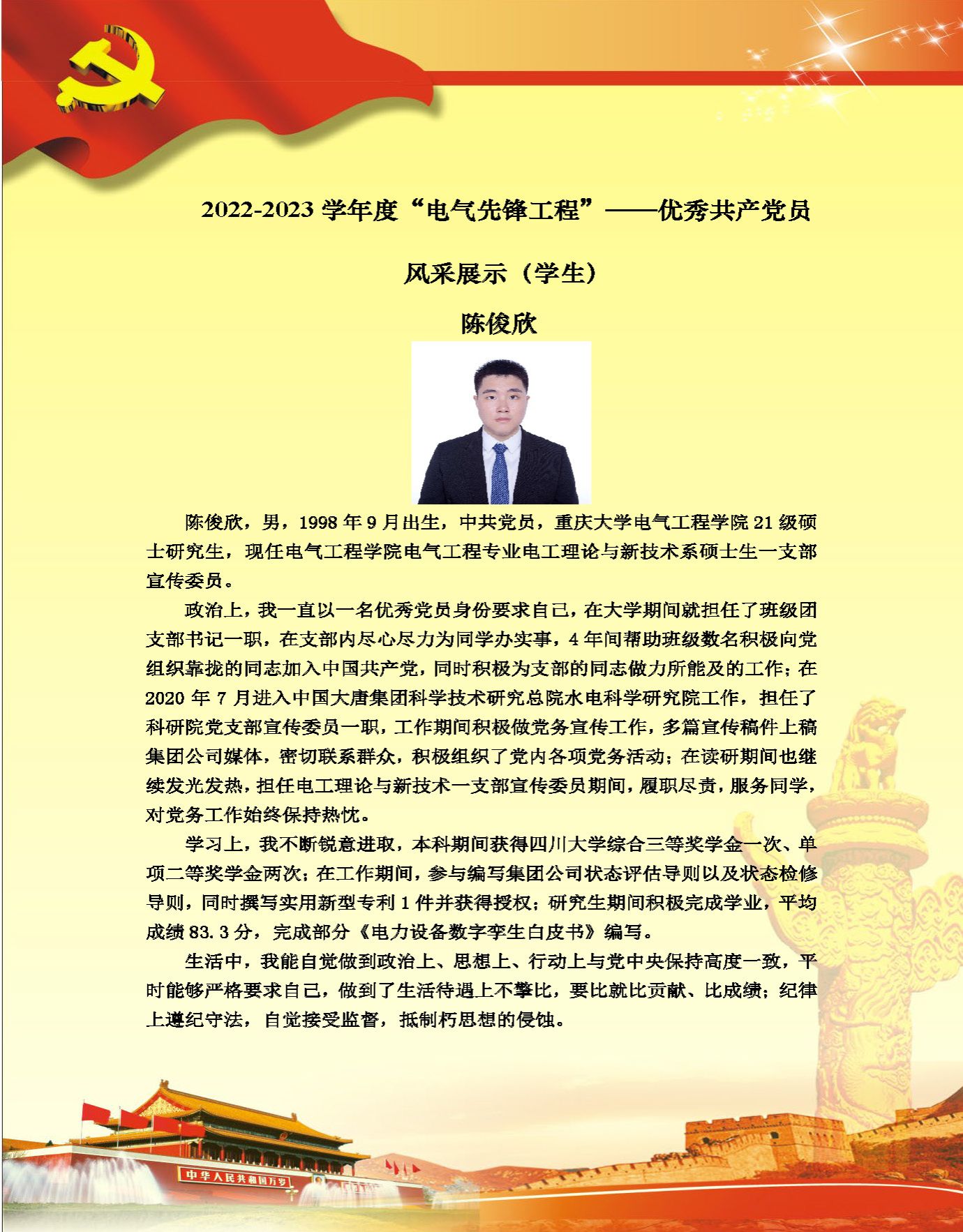 【党员风采】电工理论与新技术系硕士生一支部陈俊欣