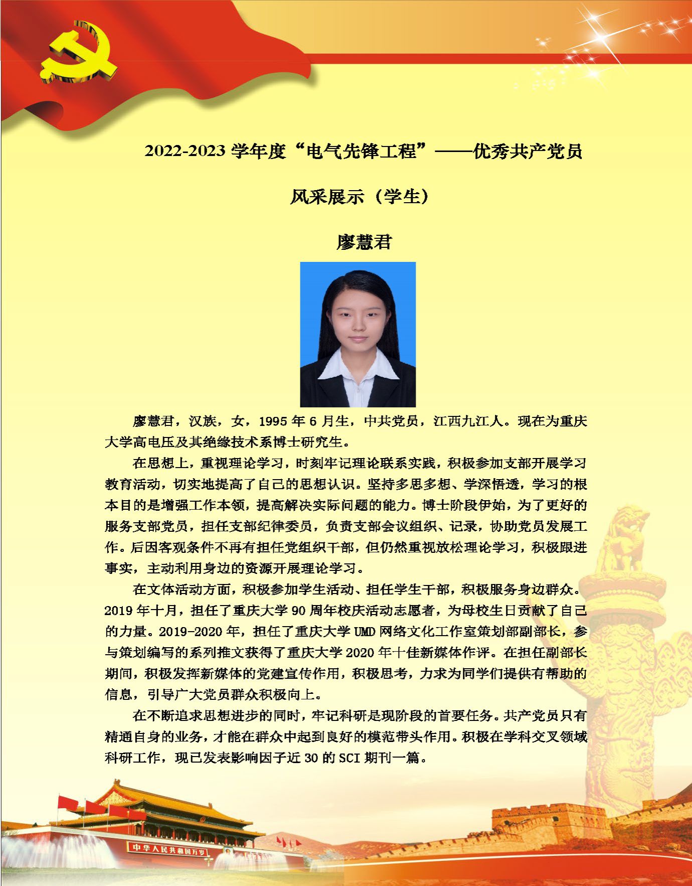 【党员风采】本科生三支部廖慧君