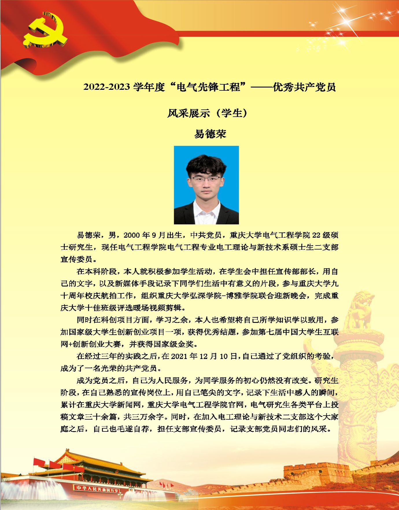 【党员风采】电工理论与新技术系硕士生二支部易德荣