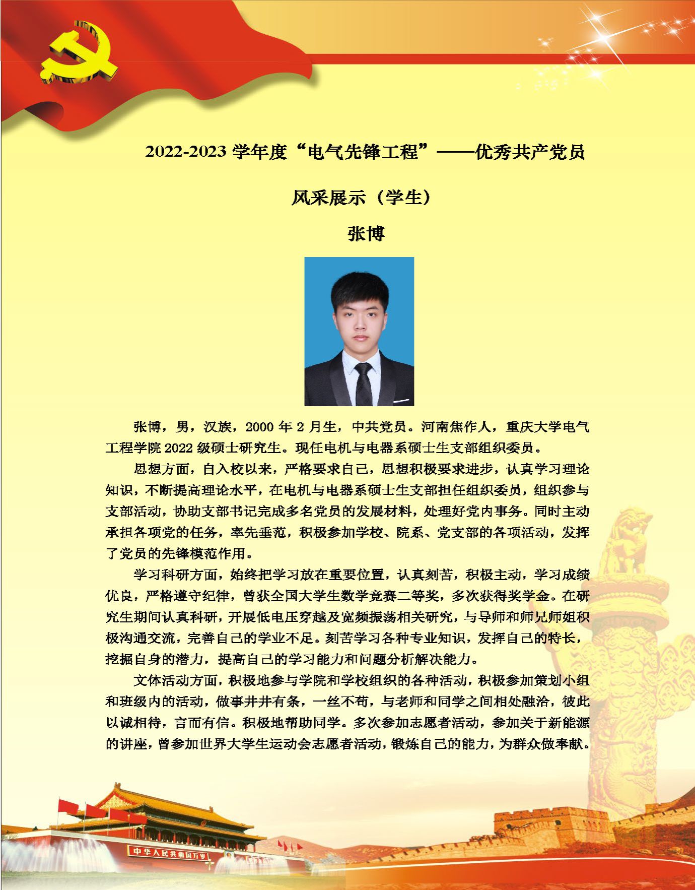 【党员风采】电机与电器系硕士生支部张博