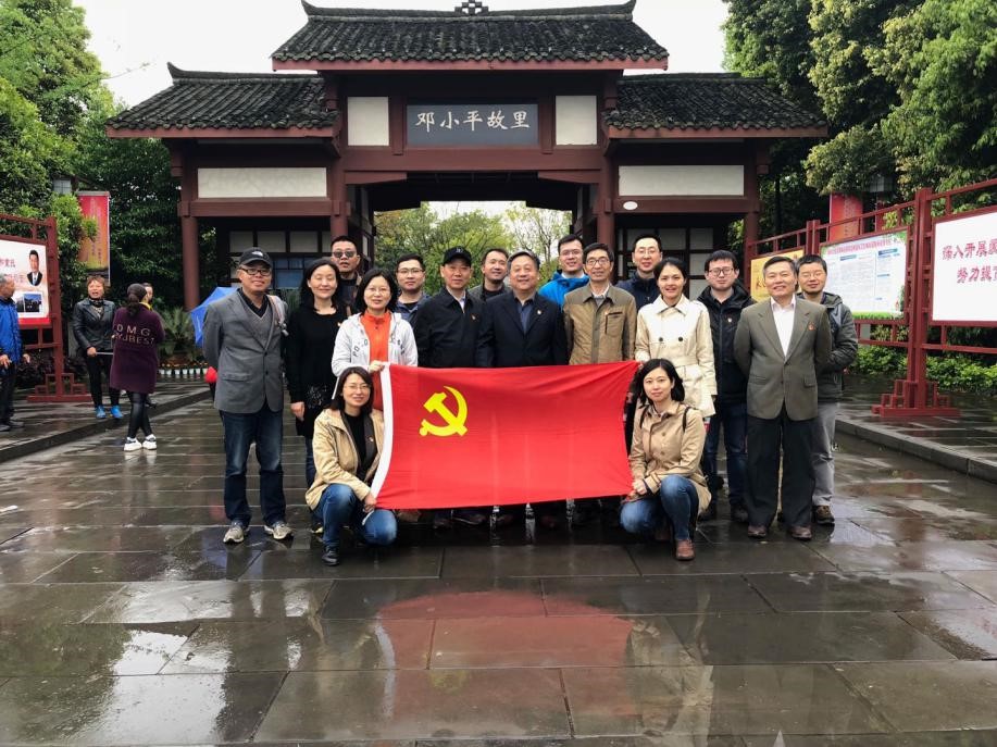 电工理论与新技术系教工党支部18名党员同志一同乘坐大巴车前往我们新中国改革开放总设计师邓小平同志的家乡——四川省广安市协兴镇。同志们虽然度过了劳累工作的一周,但在这个下着淅沥小雨的周末的早上,同志们依然热情不减。从重庆市到广安市的路程较远,同志们一上车便亮起了嗓子唱起了歌,从《祝福祖国》到《春天的故事》,再到《我爱祖国》,再到《游击队之歌》,熊兰老师和彭光金老师主动担任起了本次大巴车上的声乐老师,大家满怀着对祖国母亲崇高的敬意,愉快地度过了近三个小时的车程。