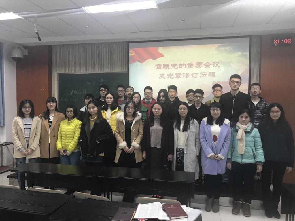 2017年12月4日晚19点,我院本科生三支部于A区八教104教室开展以“回顾当的重要会议及党章修订历程”为主题的组织生活。本次活动由周永阔同志主持,带领支部成员以PPT讲解结合视频观看的形式进行,详细讲解了自我党成立以来举行的重要会议的主要内容,以及党章的历次修订内容,旨在通过本次组织生活使支部成员对党史、党章以及党探索中国特色社会主义的正确道路的历程,拥有更加全面的理解和更加深刻的认识。