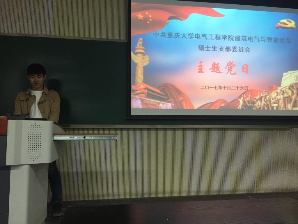 建筑电气与智能化硕士生支部委员会在A区第八教学楼202开展主题党日组织生活。本次主题党日由研三党小组组织开展,预备党员刘明同志主持此次党组织生活,支部党员及入党积极分子积极参与了此次活动。