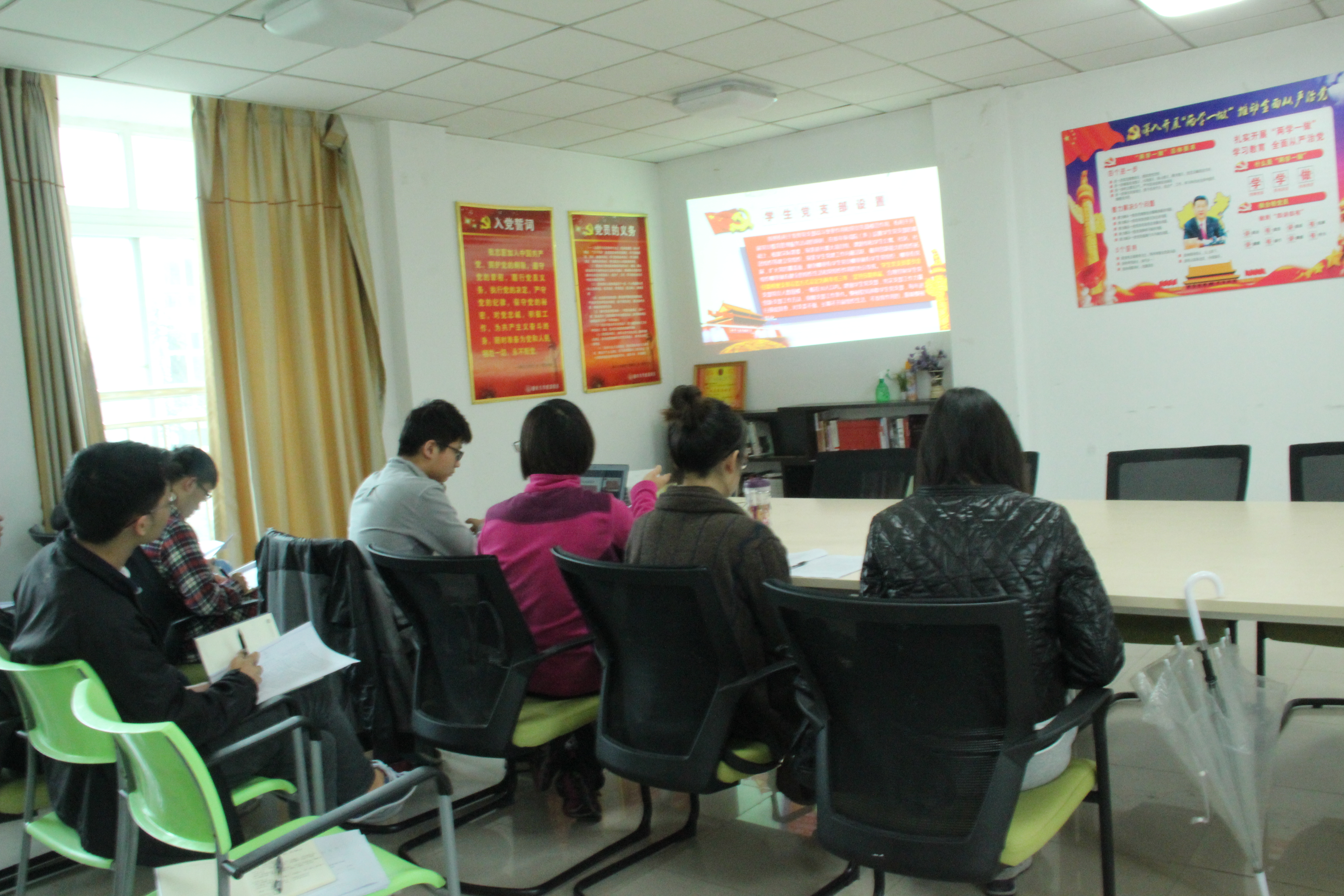 本科2015级党支部在虎溪校区梅园五幢301举行党日活动,学习中共教育部关于《普通高等学校学生党建工作标准》的文件。参加此次活动的有2015级辅导员罗敏老师、2016级辅导员刘靓老师、2016级辅导员兼团委书记喻慧老师以及2015级的预备党员们。此次活动旨在传达相关文件精神,学习相关文件内容,使高校党建工作组织化、制度化、具体化。
