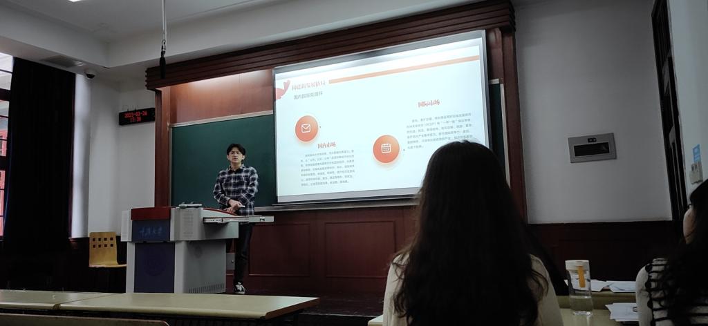 首先汤靖同志进行了第一部分内容的讲解。通过PPT展示,汤靖同志为我们详细介绍了“什么是两会”。他具体介绍了全国人民代表大会,中国人民政治协商会议的由来,以及今年两会召开的时间、参与人员以及两会的意义。同时,汤靖同志带我们回顾了本次两会的重要事件,习近平总书记全票当选中华人民共和国主席、中华人民共和国中央军事委员会主席,以及两任国务院总理的交接。另外,汤靖同志也介绍了本次的政府工作报告的重要内容,包括过去五年蜜桃直播-探花直播-色播各方面工作回顾,取得的成就以及今年政府工作的重点。