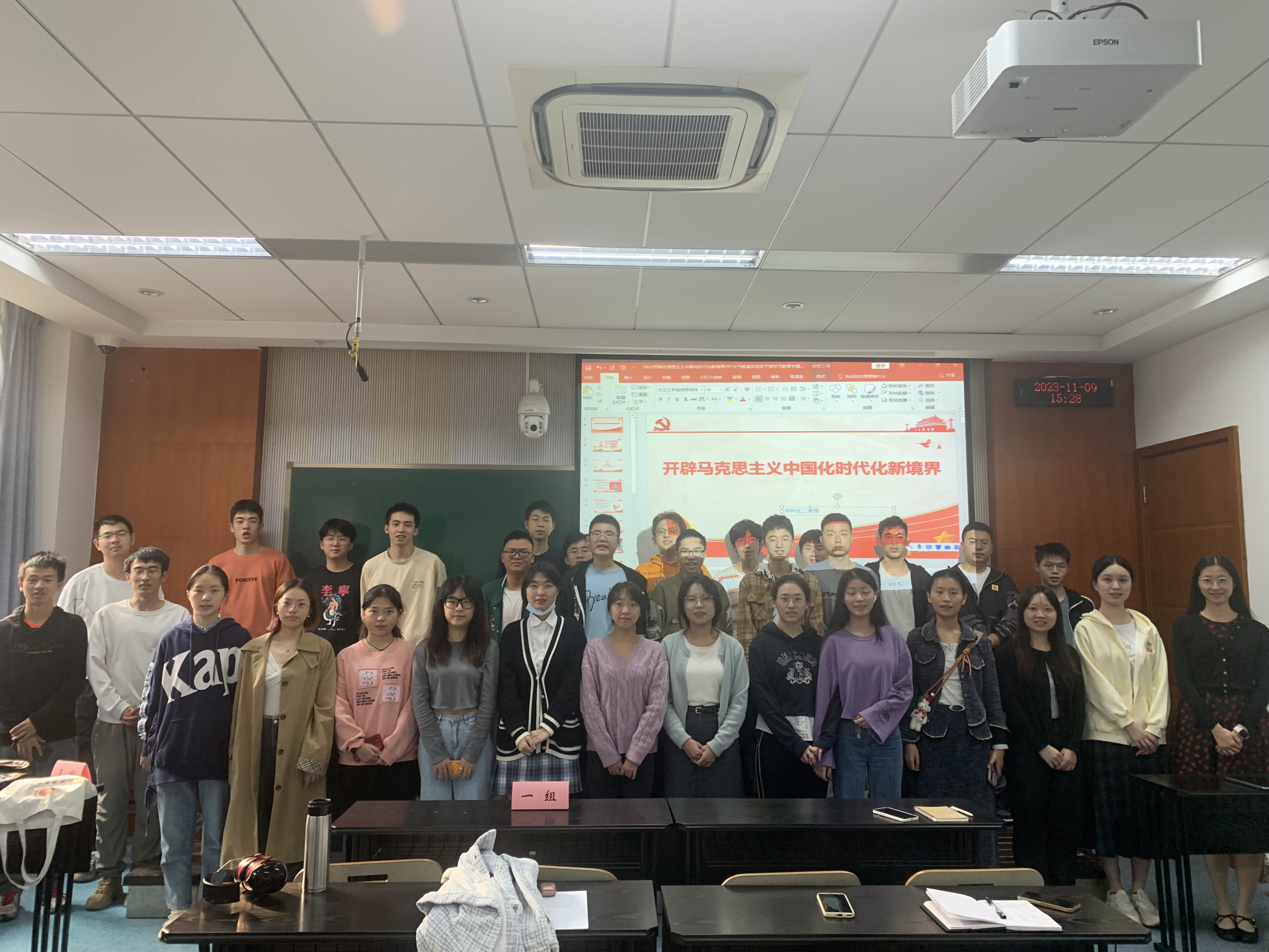 A区8302开展“开辟马克思主义中国化时代化新境界”主题党日活动,支部书记胡力方及本科生二支部全体党员参会。