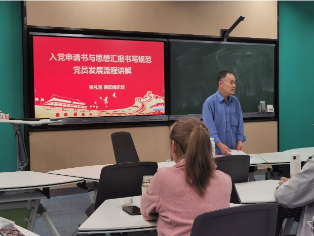兼职组织员穆礼富阐述了发展党员工作的重要意义,并详细解读了从申请入党、入党积极分子的确定和培养教育、发展对象的确定和考察、预备党员的接收、预备党员的教育考察和转正五个阶段25个工作步骤。本次培训让积极分子了解了入党的基本流程,认识到了规范入党材料的重要性,端正了入党的动机。