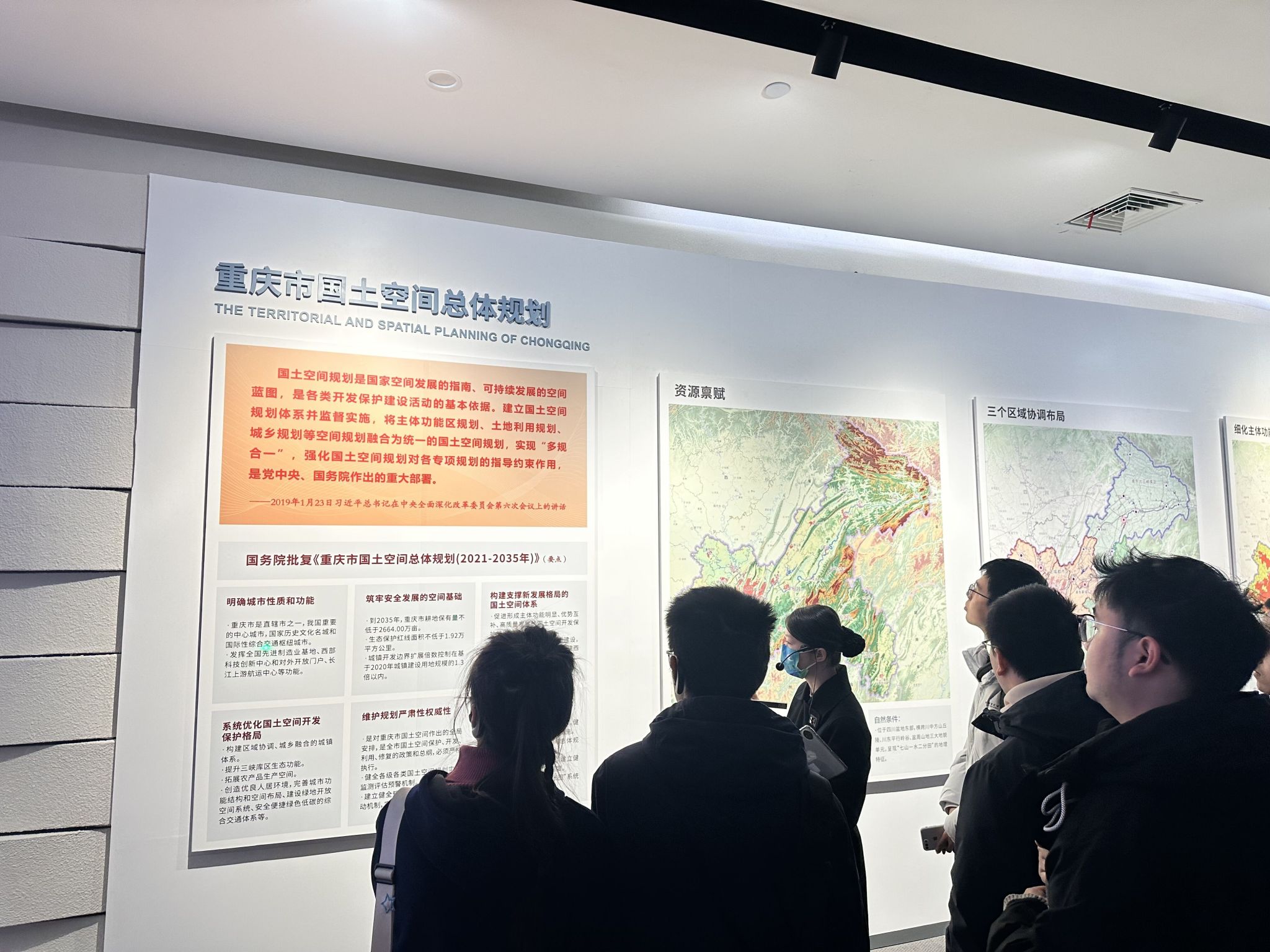 在讲解员的带领下,大家依次参观了“序厅”“总体规划”“城市更新”“高质量发展”“高品质生活”“内陆开放高地”“山清水秀美丽之地”等主题展区,通过展板、多媒体、模型、复原场景等多种形式的展示,集中展示了重庆的地质构造、山水格局、历史文脉、城市空间格局与经济社会发展规划蓝图,使大家全面了解了重庆市近年来的巨大变化和未来发展的宏伟蓝图,对重庆的历史、现在和未来展望有了更加深刻的认识。