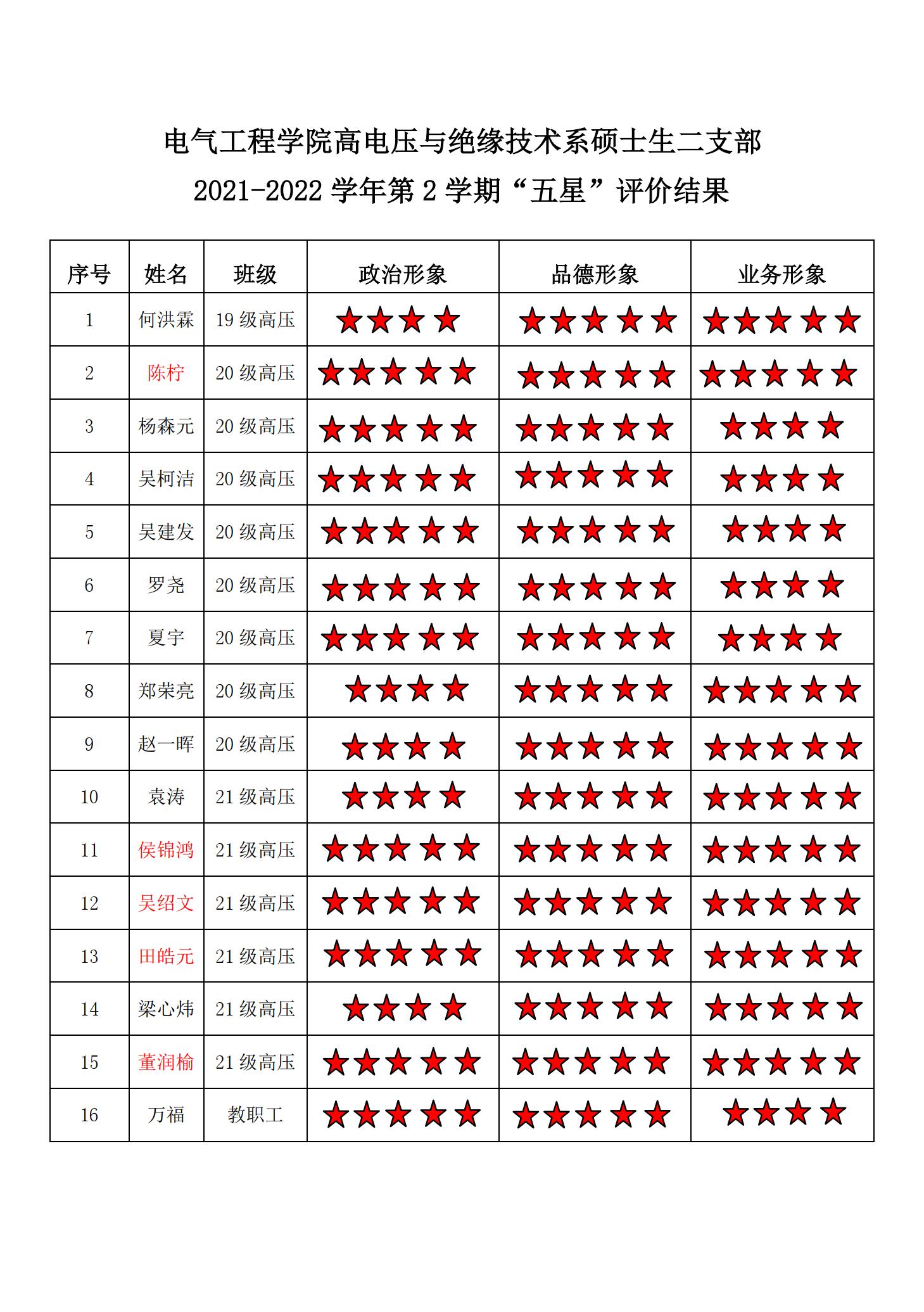 蜜桃直播 高压二支部2021-2022学年第二学期“五星评价结果”