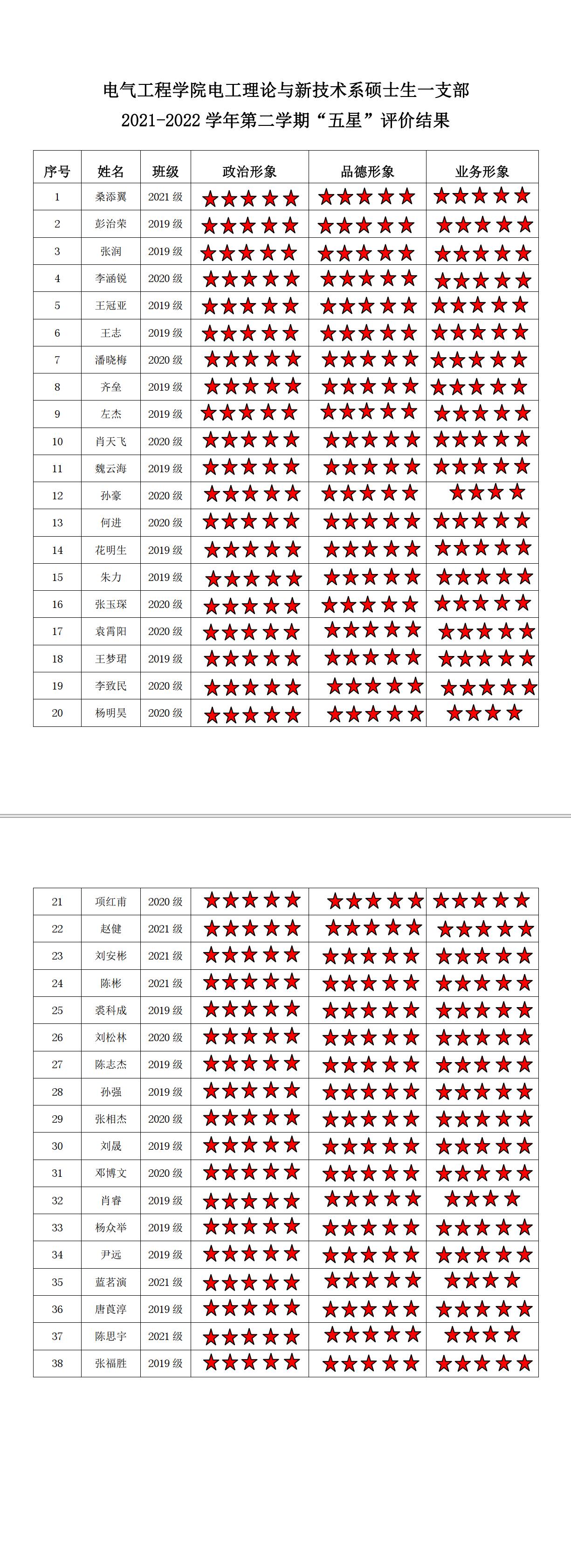 蜜桃直播 电机支部2021-2022学年第二学期“五星评价结果”