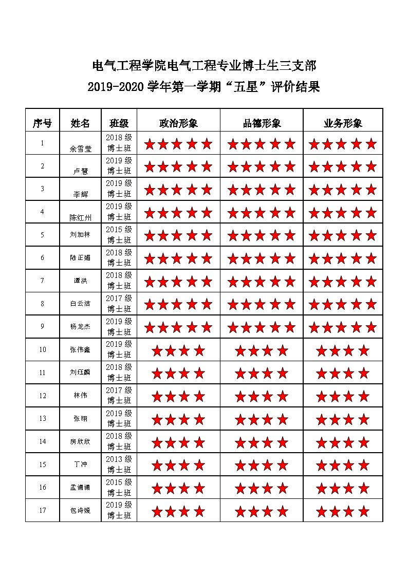 蜜桃直播 博士四支部2019-2020学年第1学期“五星”评价结果