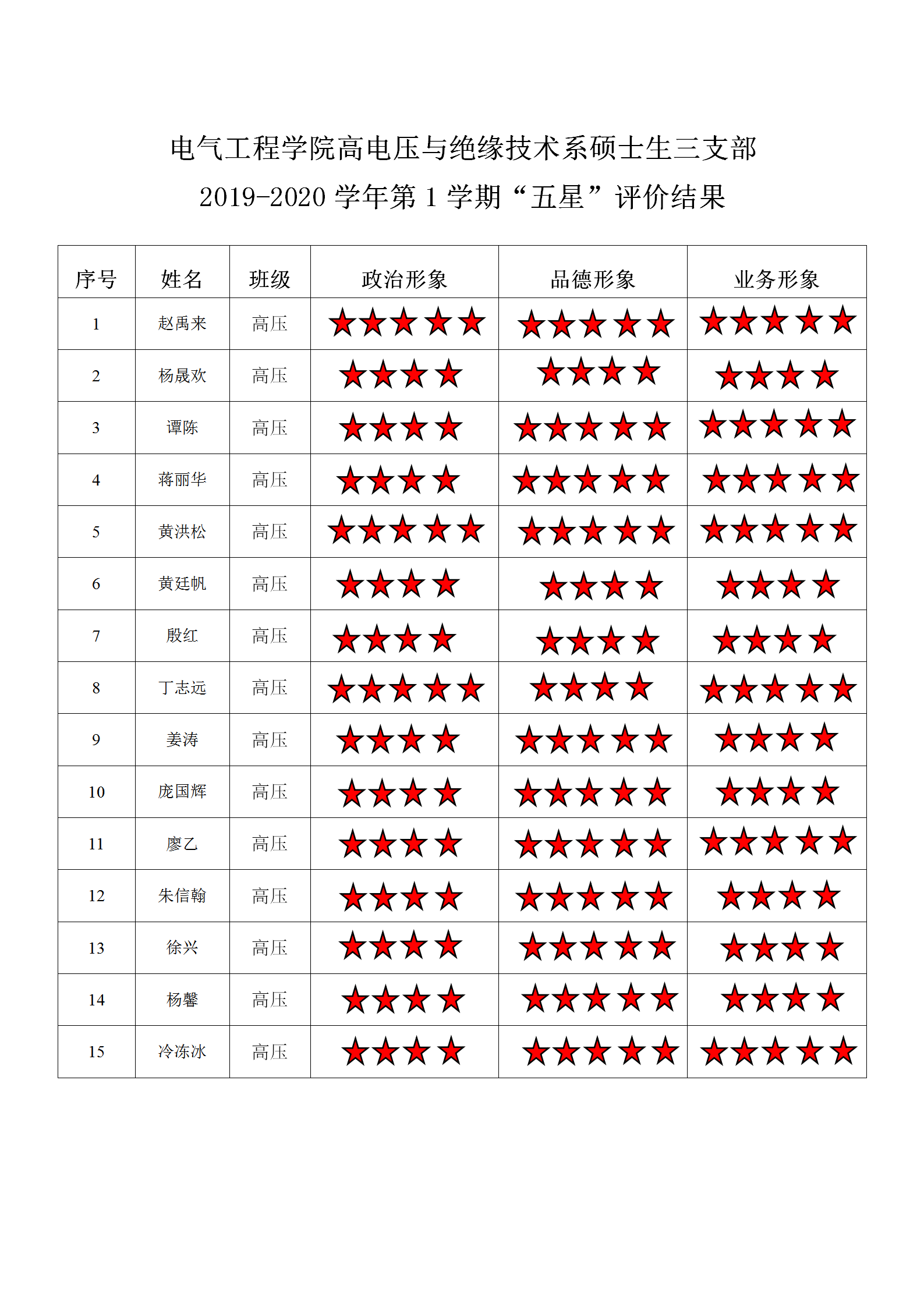蜜桃直播 高电压与绝缘技术第四支部 2019-2020学年第1学期“五星”评价结果