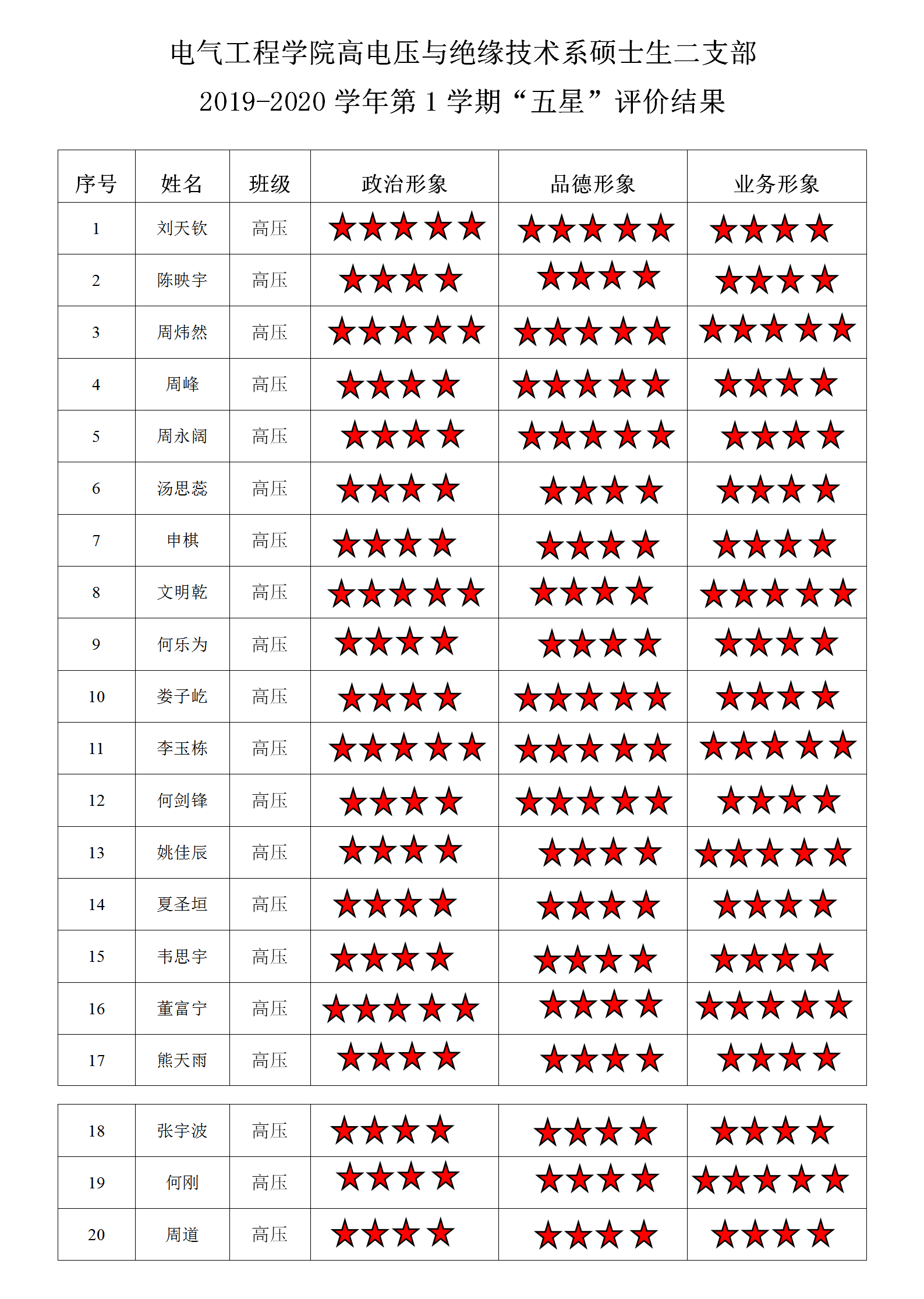 蜜桃直播 高电压与绝缘技术系硕士第二支部 2019-2020学年第1学期“五星”评价结果