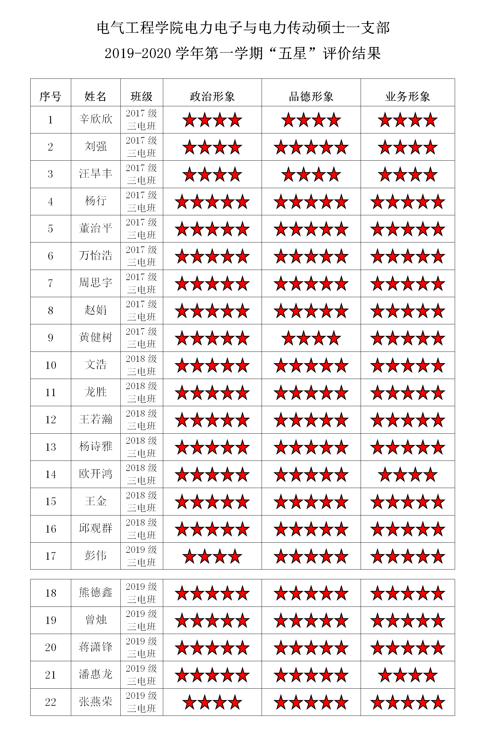 蜜桃直播 电力电子系硕士第二支部 2019-2020学年第1学期“五星”评价结果