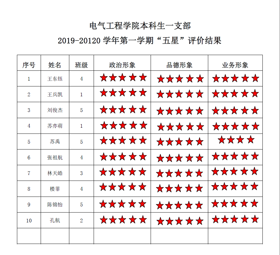 蜜桃直播 本科生二支部2019-2020学年第一学期 “五星”评价结果