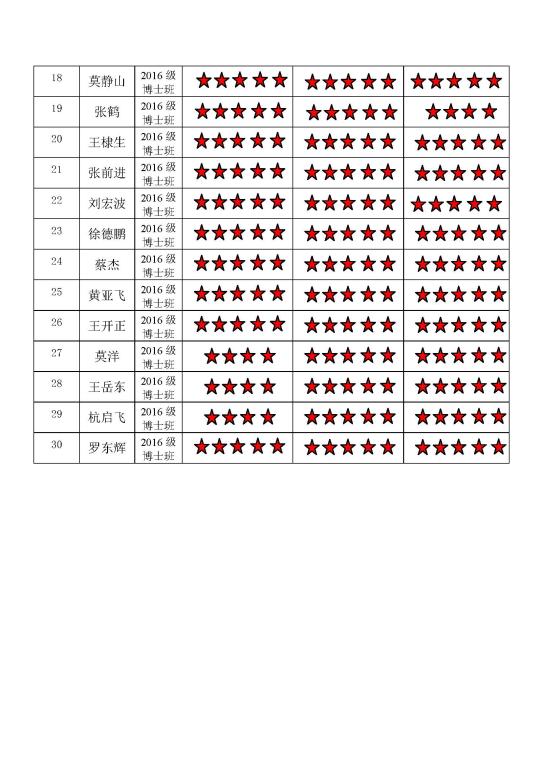 中共蜜桃直播-探花直播-色播 博士生三支部委员会 2017-2018学年第一学期 “五星”评价结果