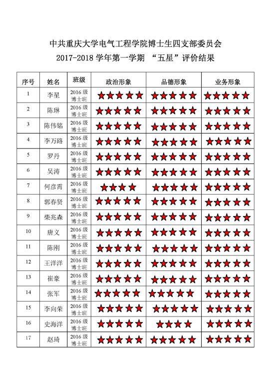 中共蜜桃直播-探花直播-色播 博士生一支部委员会 2017-2018学年第一学期 “五星”评价结果