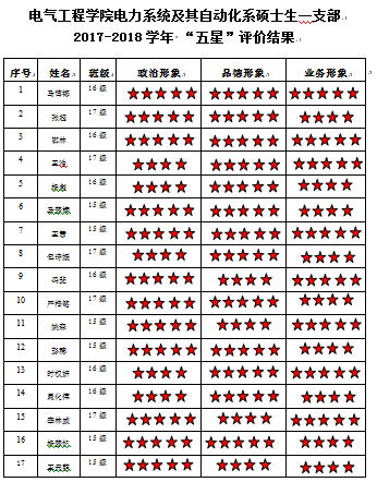 中共蜜桃直播-探花直播-色播 电力系统及其自动化系硕士生一支部2017-2018学年 “五星”评价结果