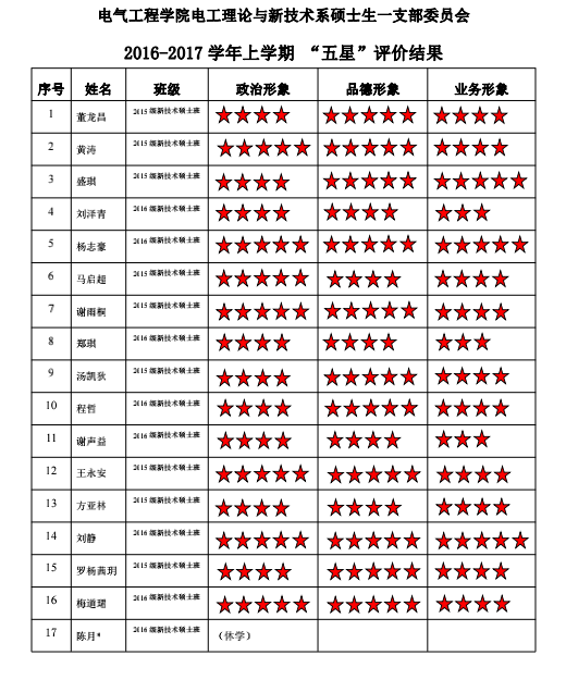 中共蜜桃直播-探花直播-色播 电力系统及其自动化系硕士生一支部2017-2018学年 “五星”评价结果