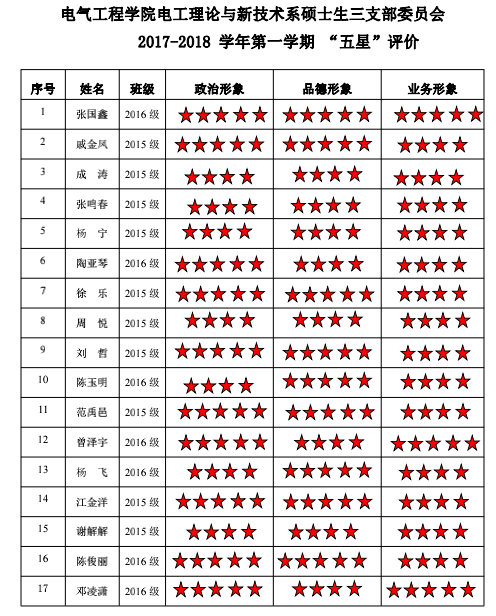 中共蜜桃直播-探花直播-色播 电工理论与新技术系硕士生三支部委员会2017-2018学年 “五星”评价结果
