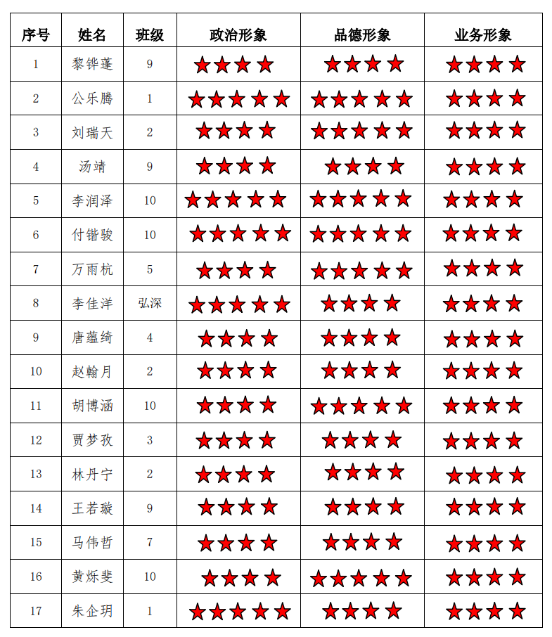 蜜桃直播 本科生二支部 2022-2023学年第二学期“五星”评价结果