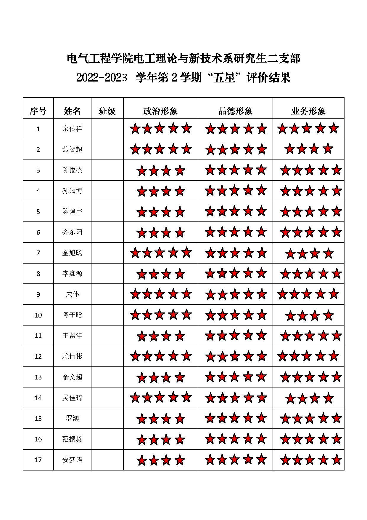 蜜桃直播 电工一支部 2022-2023学年第二学期“五星”评价结果