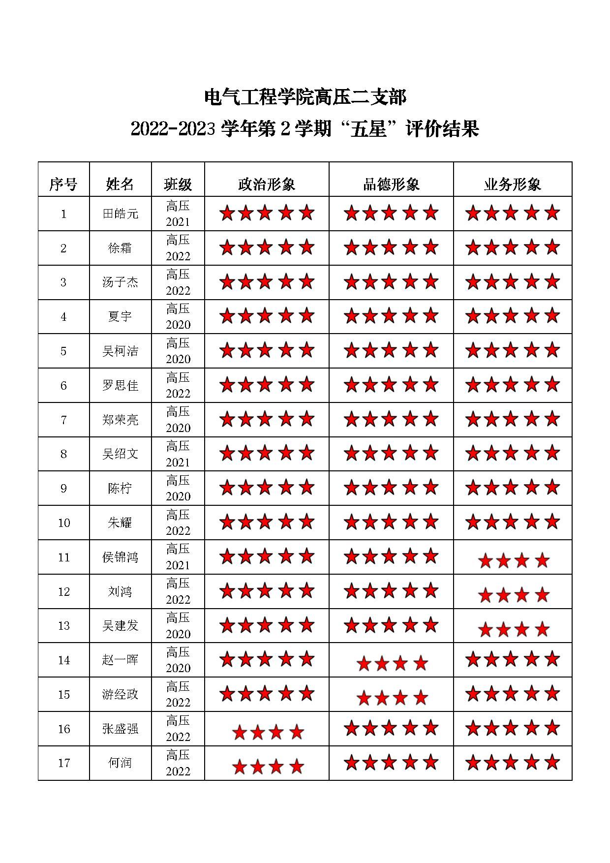 蜜桃直播 高压二支部 2022-2023学年第二学期“五星”评价结果