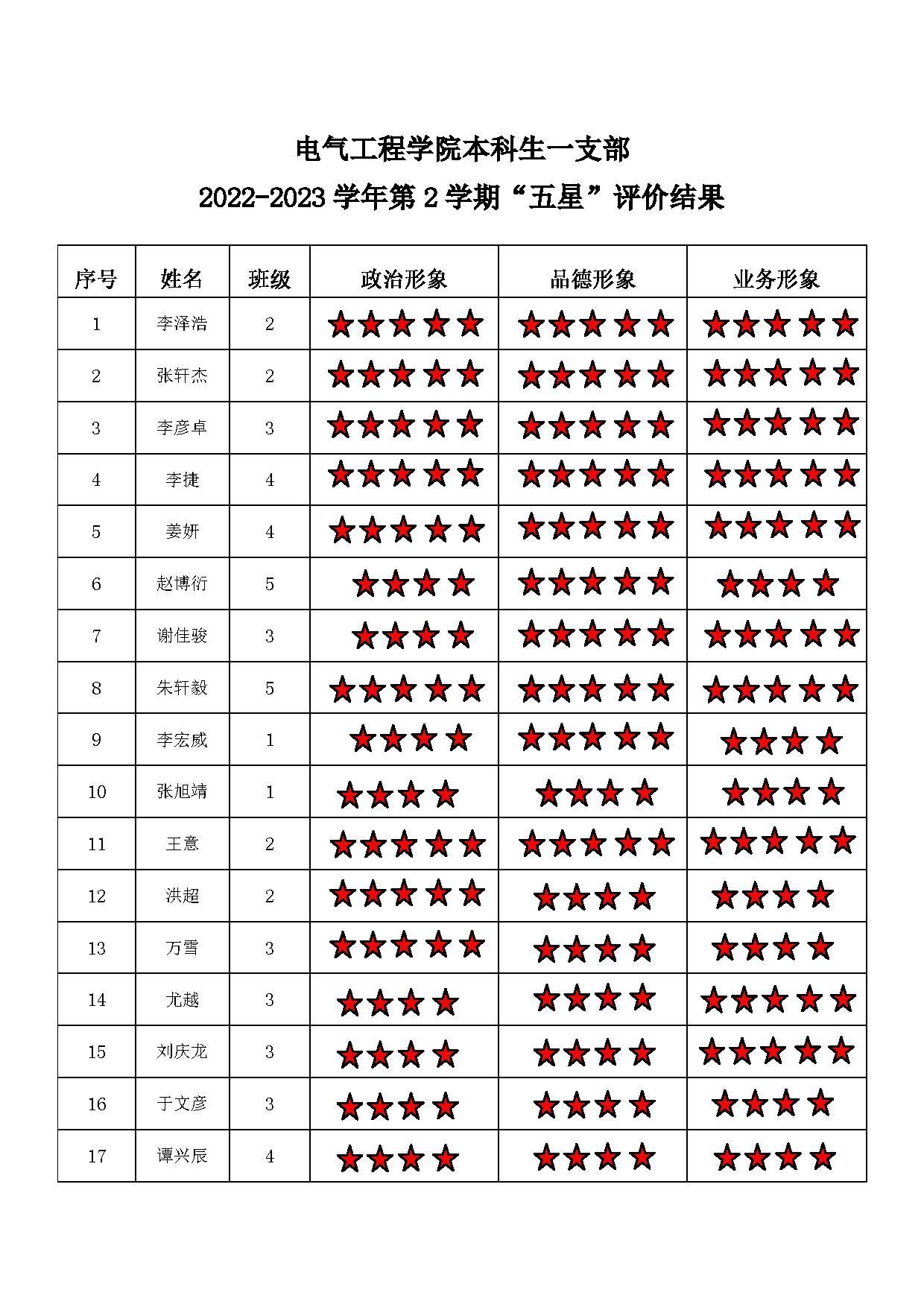 蜜桃直播 本科生二支部 2022-2023学年第二学期“五星”评价结果