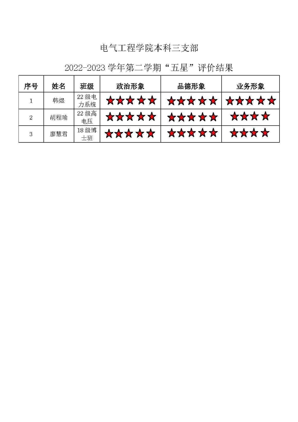 蜜桃直播 本科生三支部 2022-2023学年第二学期“五星”评价结果