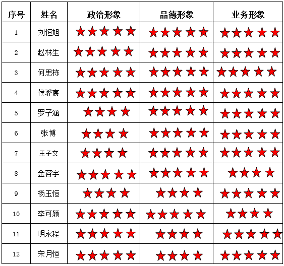 蜜桃直播 电机支部 2024-2025学年第一学期“五星”评价结果