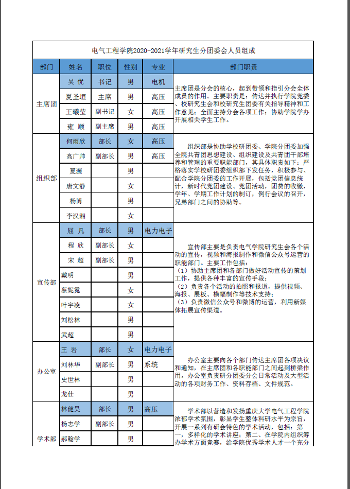 蜜桃直播 2020-2021学年研究生分团委会人员组成