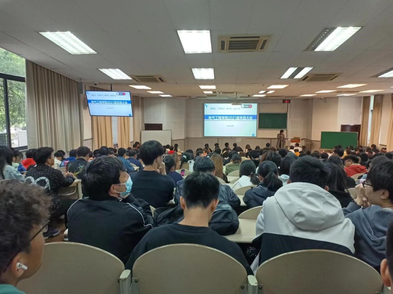 2021级年级大会在虎溪校区D1137教室召开。本次大会旨在为同学们答疑解惑,助力电气21级学子掌舵人生方向、树立正确人生价值观。年级辅导员罗敏、教务办公室副主任李惟卫、电力系副教授王强钢、2021级全体本科生参会。