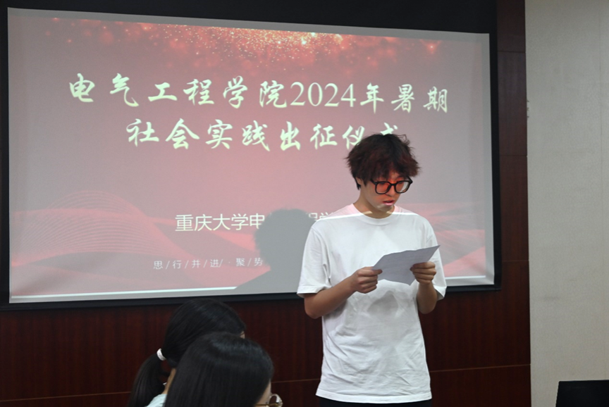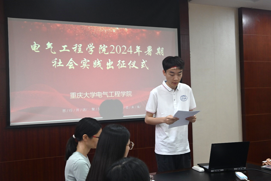 出征仪式上,部分实践团代表依次发言。首先,“筑梦美丽乡村,共绘多彩武隆”实践团代表张炳飞回顾过去两年的实践活动,团队通过多种形式助力生态文明建设,获得了多项荣誉并被多家权威媒体报道。他指出,未来,团队将继续凝心聚力,立足本地特色、贯彻新发展理念,推动武隆高质量发展,贡献高校力量。随后,“电气工程双一流育人路”实践团代表韩勤鉴发言,他表示,通过此次社会实践,团队应深入挖掘和传承蜜桃直播