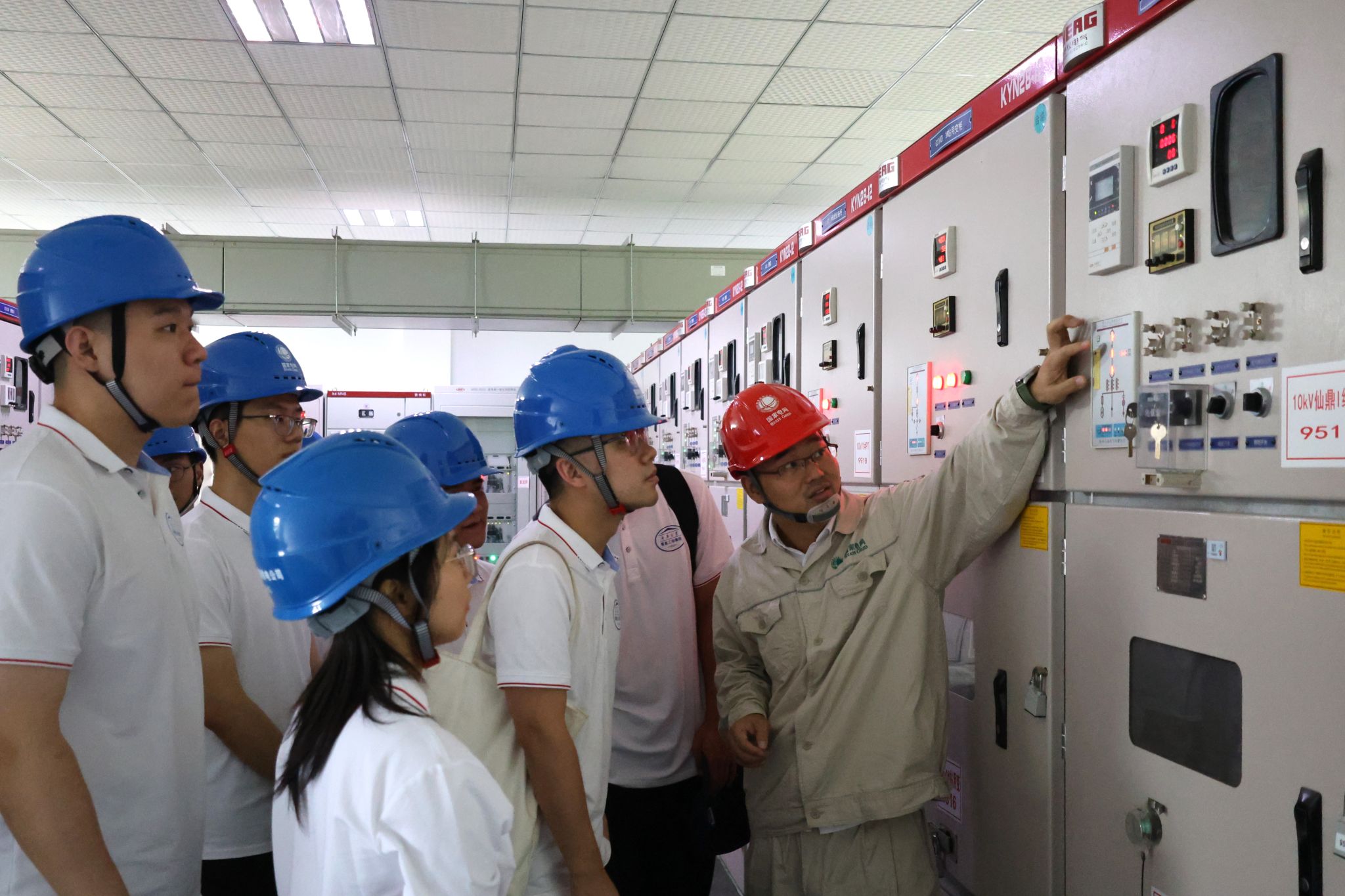 进入开闭所后,开闭所所长程毫详细介绍了变电站的电气主接线系统及断路器、隔离开关、电压互感器和电流互感器等关键设备的工作原理和功能,强调了断路器在系统保护中的作用以及隔离开关在安全检修中的重要性。同时,他分享了设备的维护经验和故障处理案例,强调了日常维护的细节注意事项。